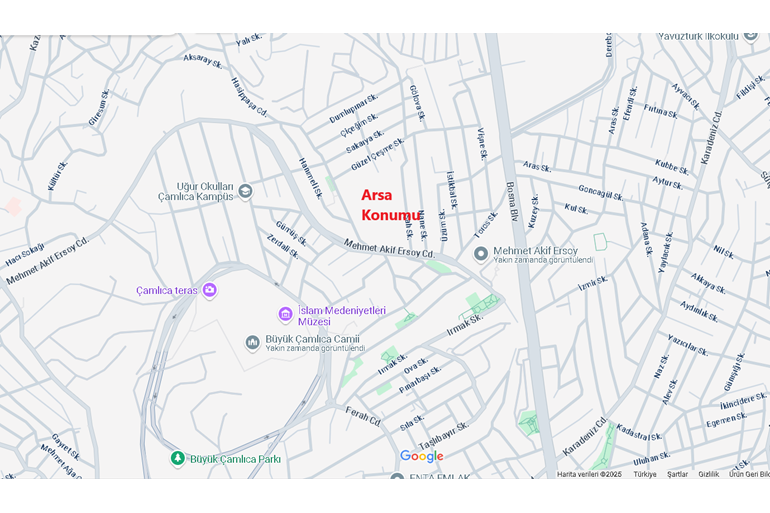 Çamlıca Mehmet Akif Ersoy Mahallesi Ada Bazlı İmarlı Arsa